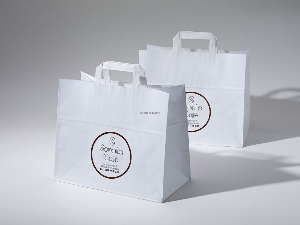 Torby papierowe z uchwytem płaskim papierowym - najtańszy zamiennik toreb foliowych.