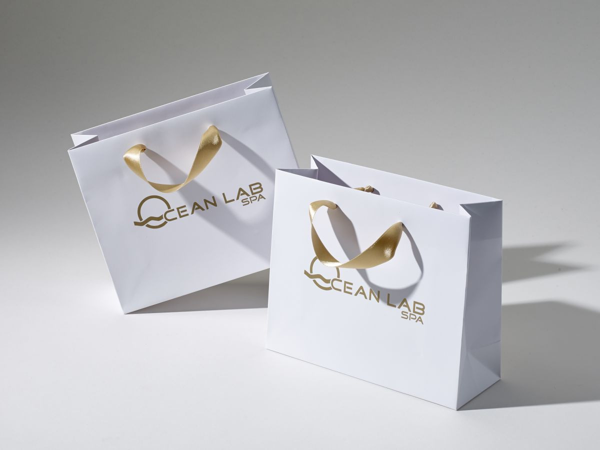 Torby papierowe premium zabezpieczone laminatem matowym lub błyszczącym. Seria toreb papierowych premium z uchwytem ze sznurka - nadruki wykonane farbami UV w systematyce kolorów Pantone