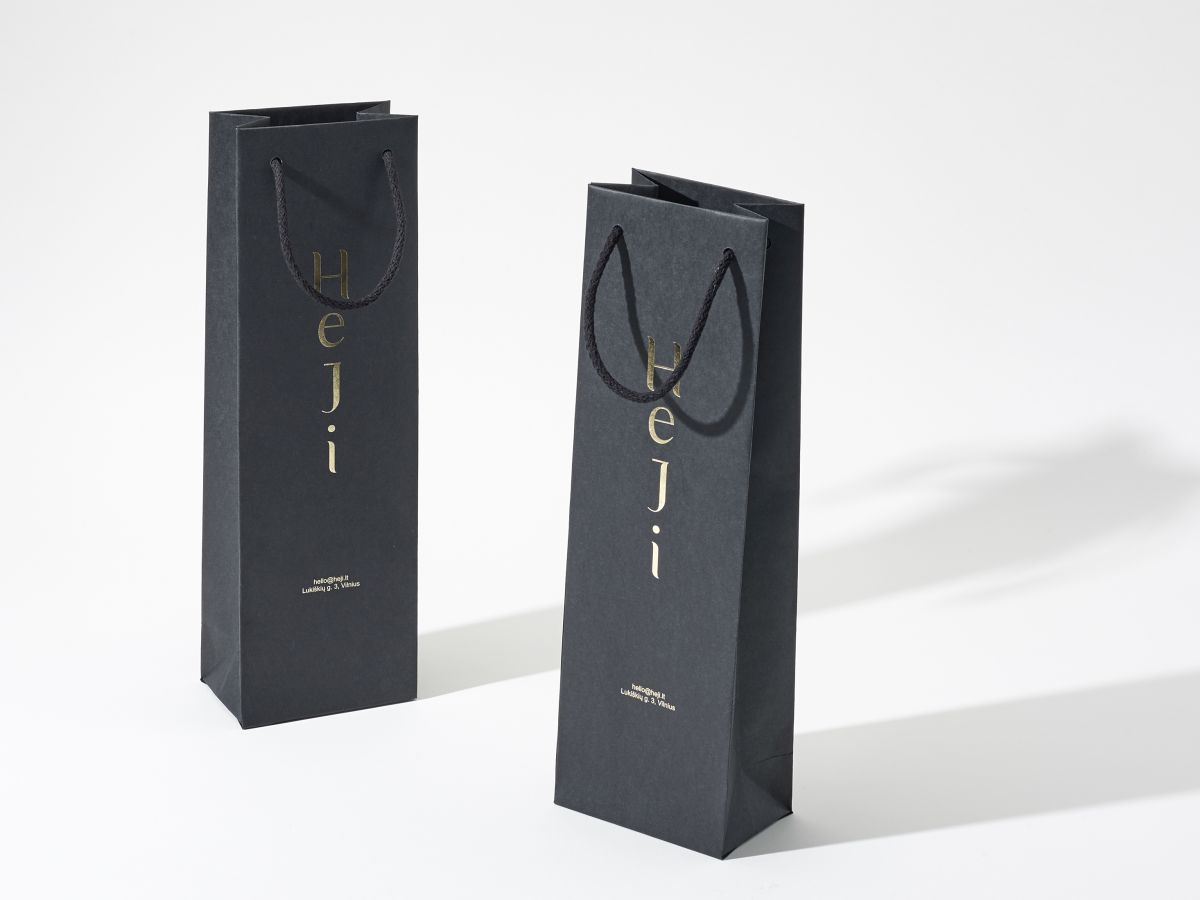 • czarny papier 160g barwiony w masie, usztywniona góra 2x900g i dno torby 450g, uchwyt sznurek 5mm wiązany 2x50cm, zadruk Pantone Color, Pantone Metalic, Pantone White, Hot Stamping (złocenie), min ilość 100 szt.
