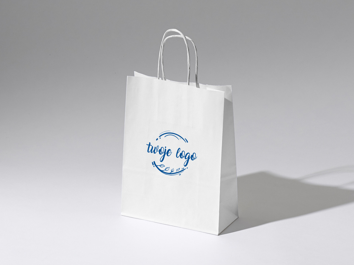 18x8x22 torebka papierowa biała ekologiczna kraft z nadrukiem reklamowym
