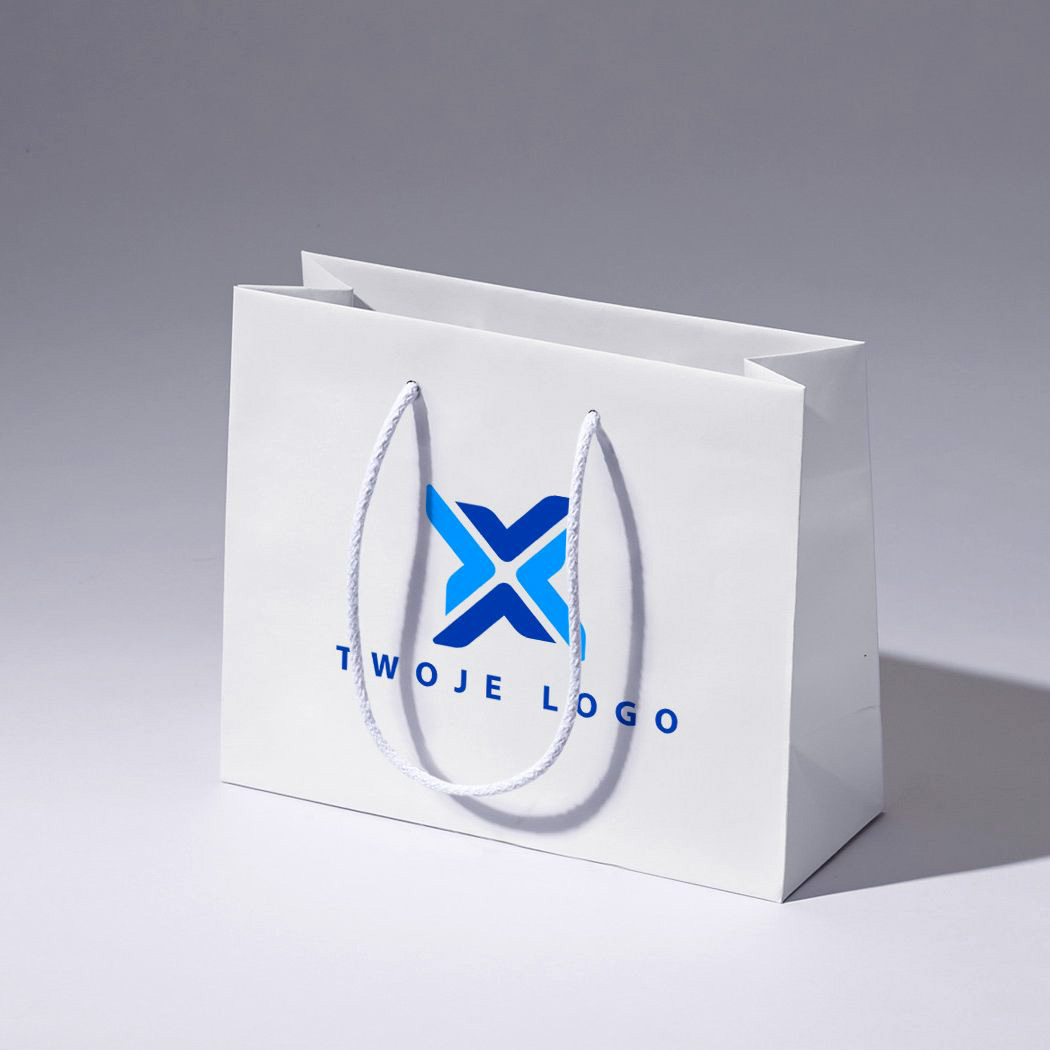 24x9x20 torebka papierowa ekologiczna premium biała z nadrukiem reklamowym