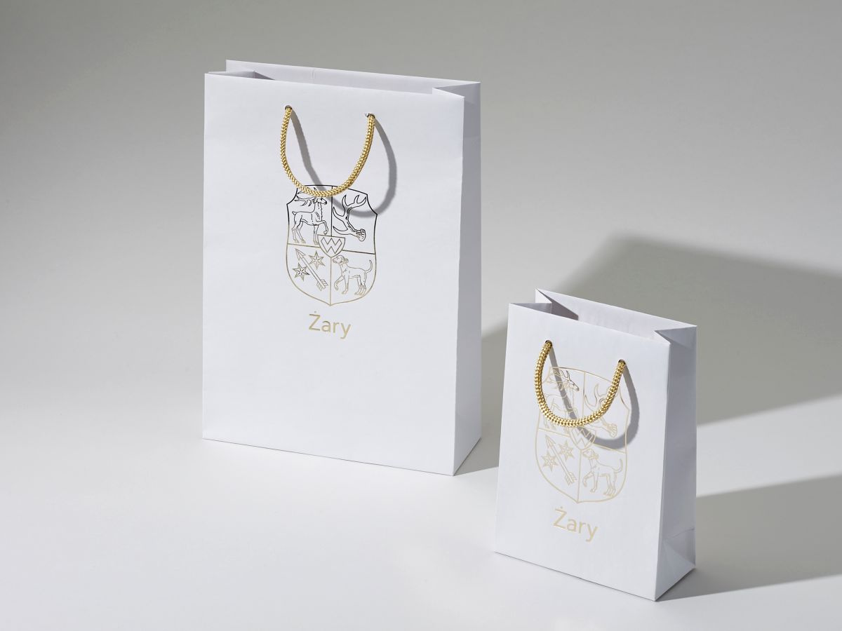 • rozmiar 24x9x34 (podst x wys.)papier kraft 160g, kolor biały,usztywniona góra 2x900g i dno torby 450g,uchwyt sznurek wiązany 5mm, 2x50cm,zadruk Pantone,CMYK,Hot Stamping (złocenie),minimalna ilość