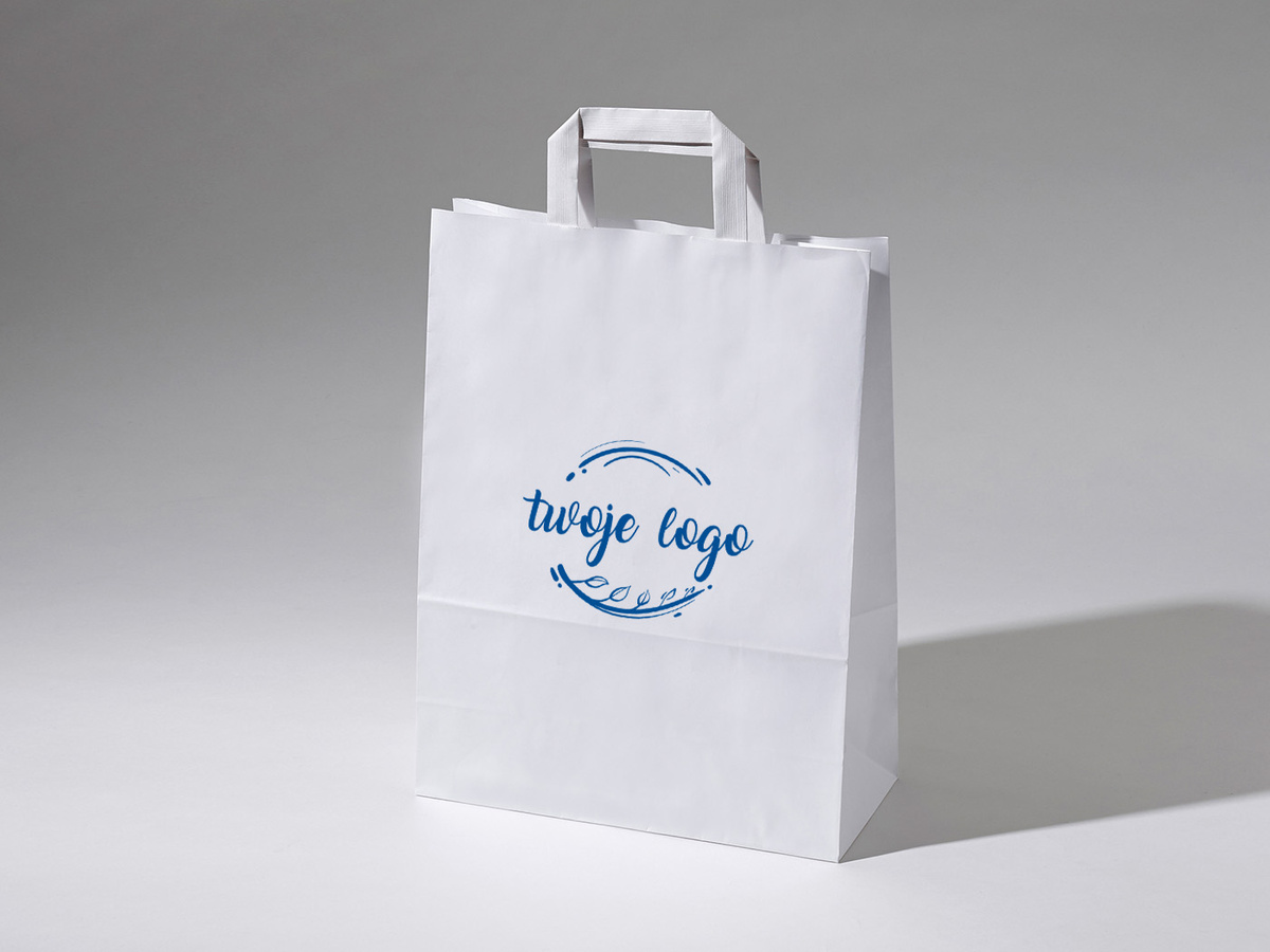 25x11x33 torba papierowa biała kraft z nadrukiem reklamowym