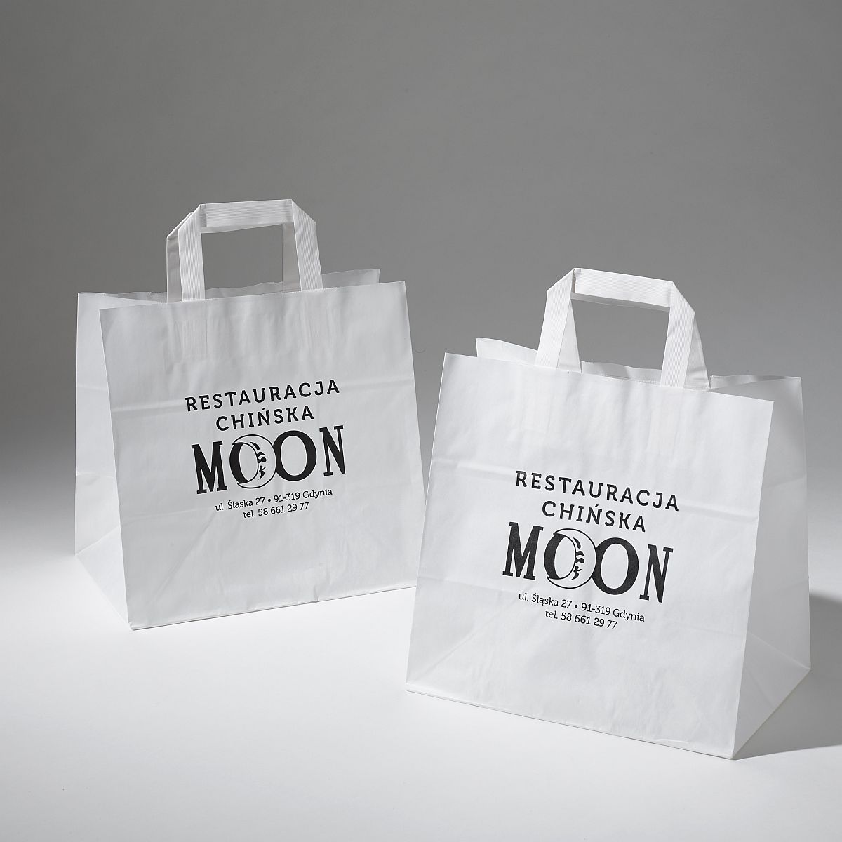 • papier gładki, 80g uchwyt płaski wklejany, nadruk 1 kolor Pantone do 20% min. 500 szt.