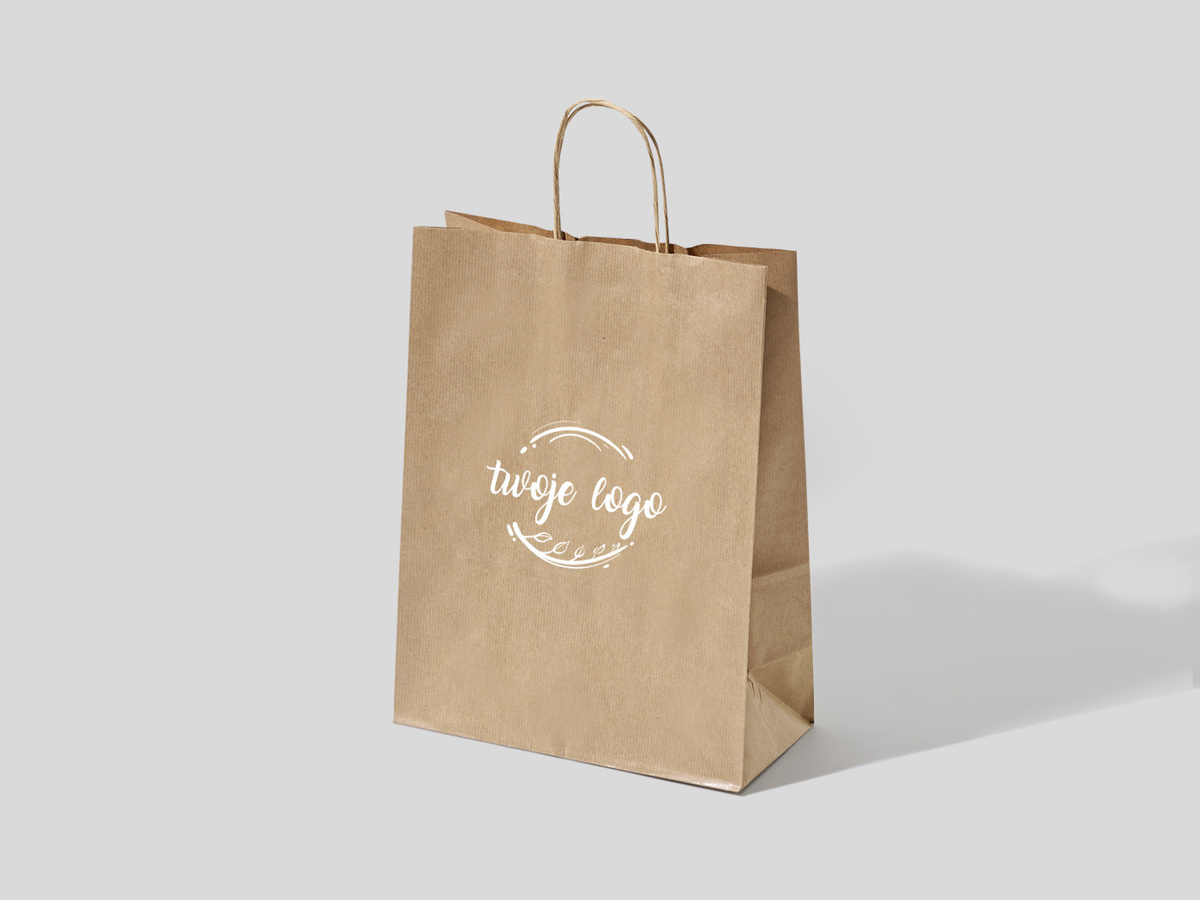 25x11x33 torba torba ekologiczna brązowa papierowa kraft z nadrukiem reklamowym