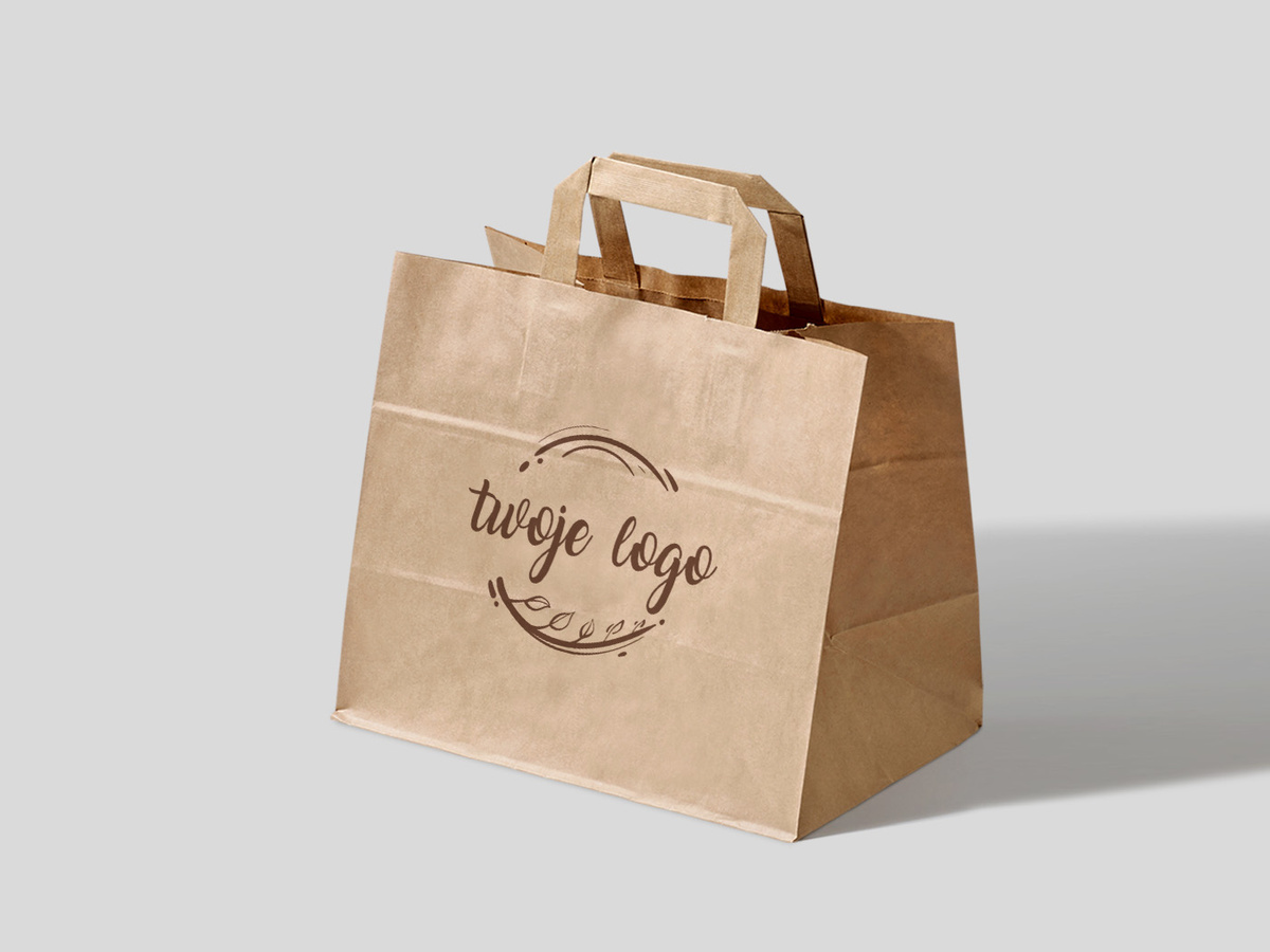 26x17x25 torby papierowe kraft brązowe cateringowe z nadrukiem reklamowym