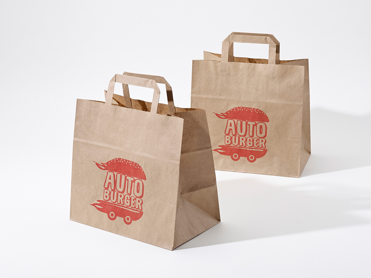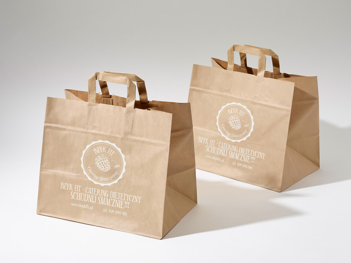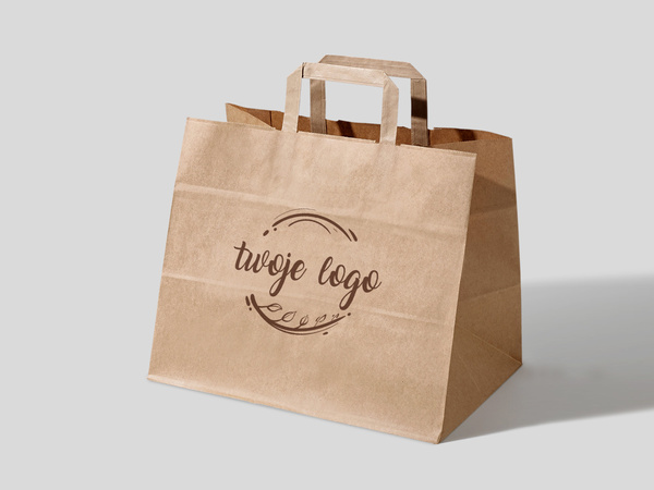 32x21x26 XL torba papierowa kraft brązowa cateringowa z nadrukiem reklamowym