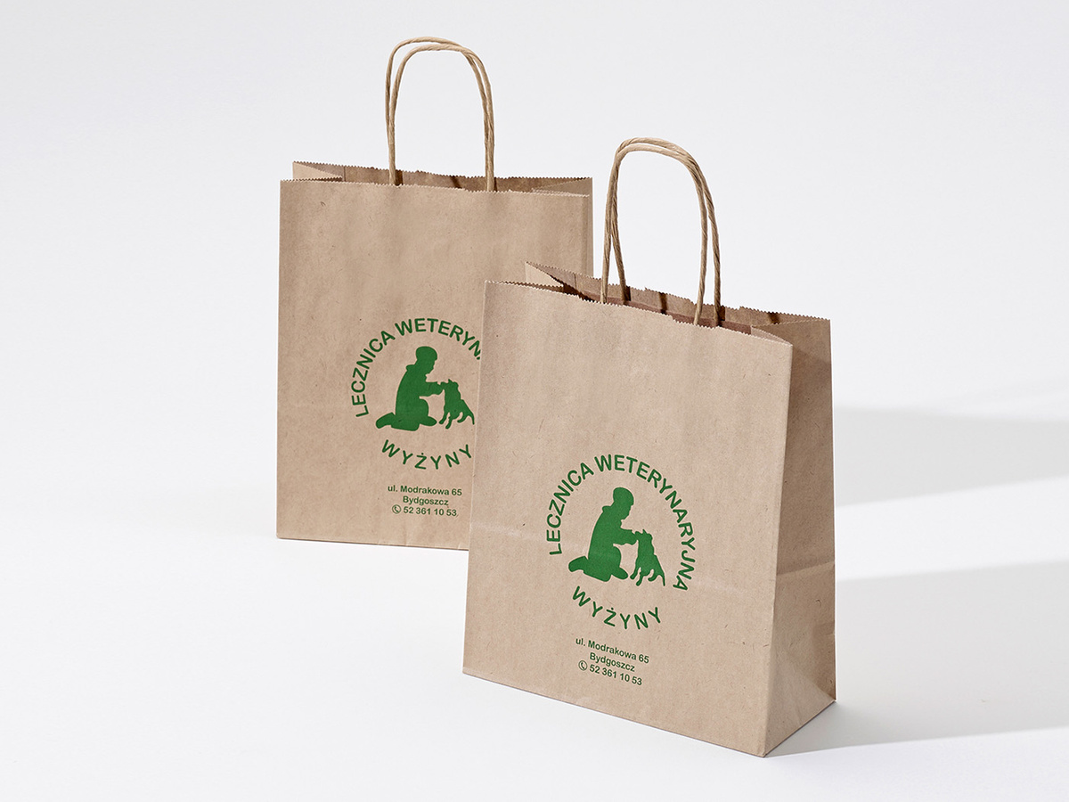 Korektę projektu graficznego, koszt przygotowania do druku, polimer, nadruk reklamowy, torbę papierową.