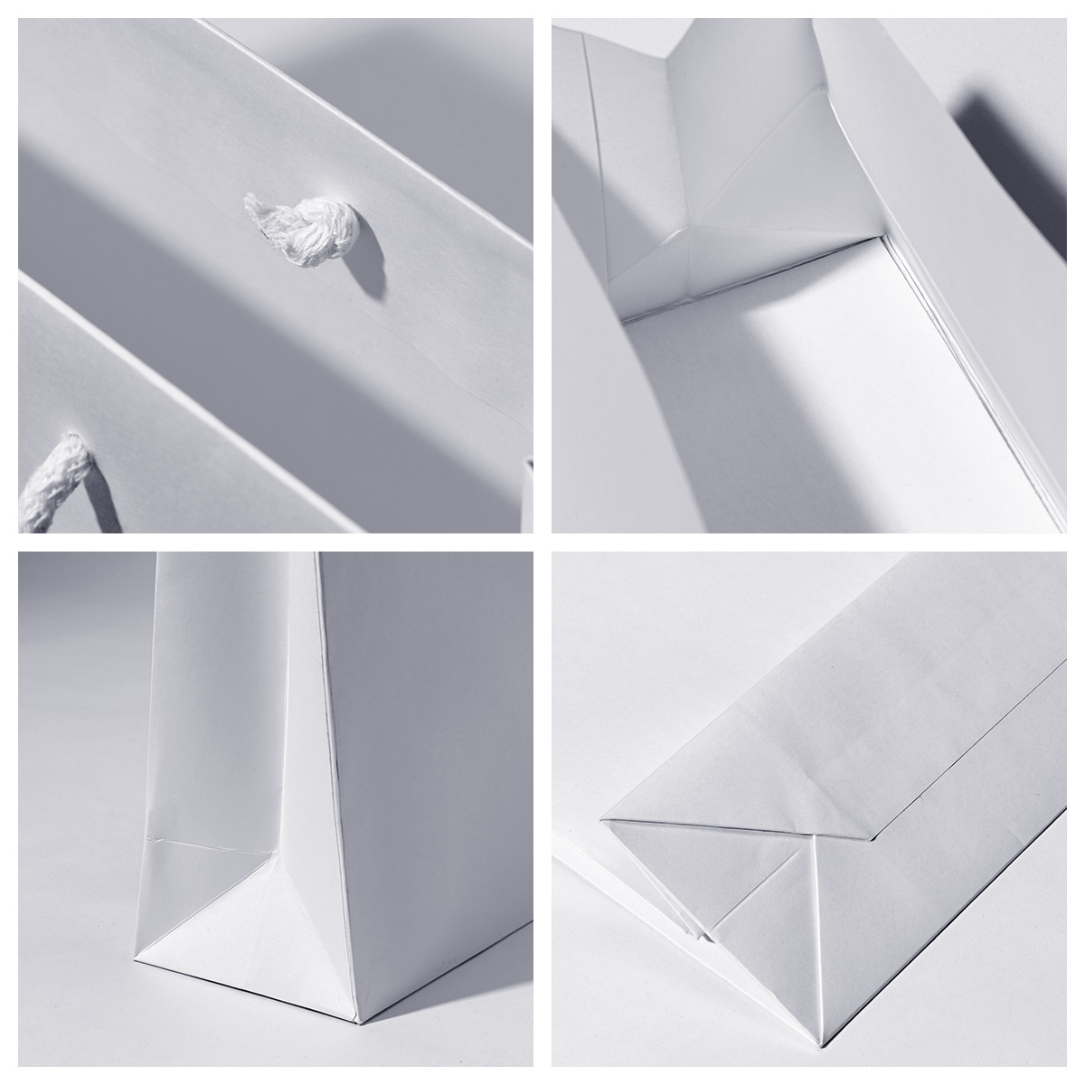 • rozmiar 45x12x36 (podstawa x wysokość) papier kraft white 160g, kolor biały, usztywniona góra 2x900g i dno torby 450g, uchwyt wiązany 5mm, długość 2x50cm