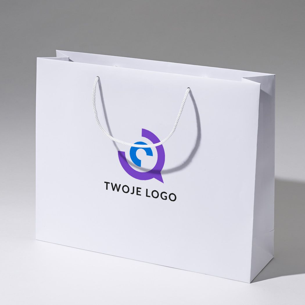 45x12x36 torba papierowa premium biała laminowana matowa z nadrukiem reklamowym