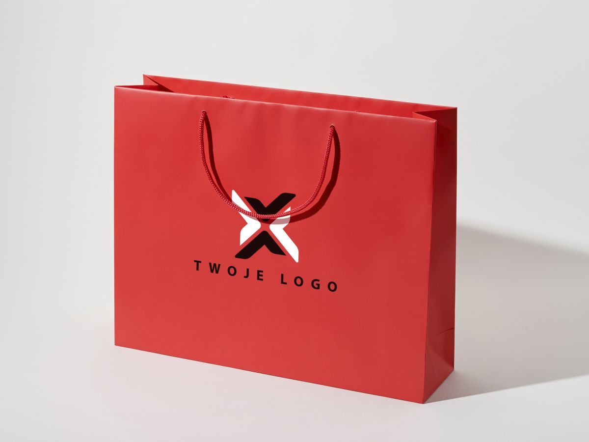 - rozmiar 45x12x36 (podstawa x wys.)papier C2S 200g z laminatem matowym, kolor torby Pantone red 2034 ,usztywniona góra 2x1000g, dno torby 450g,uchwyt sznurek wiązany 5mm, 2x50cm zadruk Pantone UV, Hot Stamping (złocenie) minimalna ilość 100 szt.